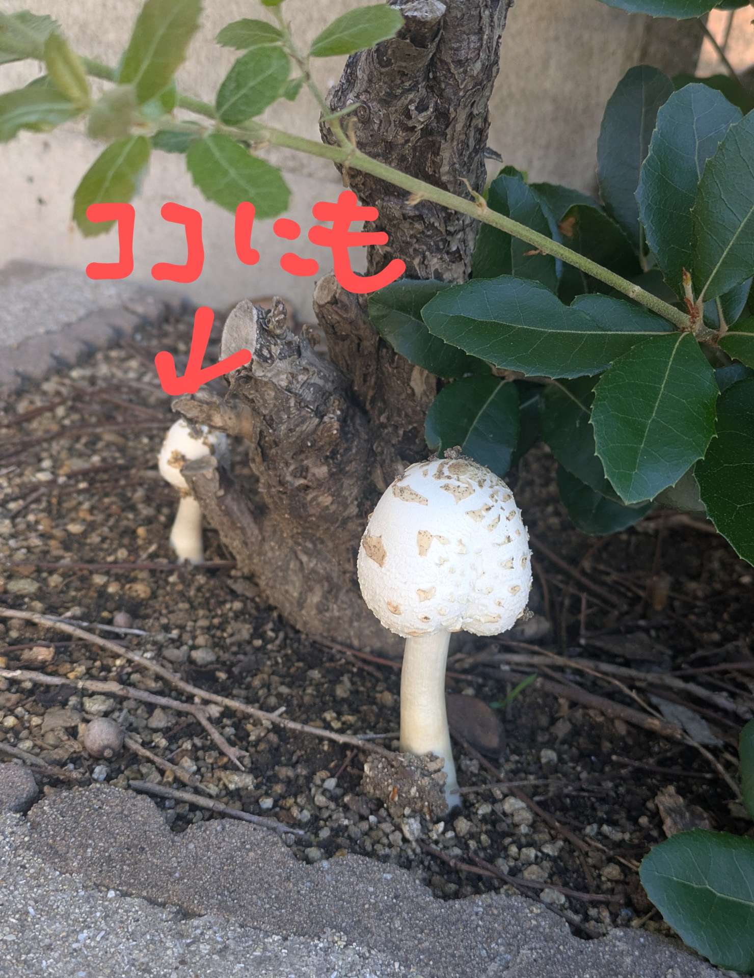 今朝、出勤時に家を出たら玄関の植込みに🍄発見???